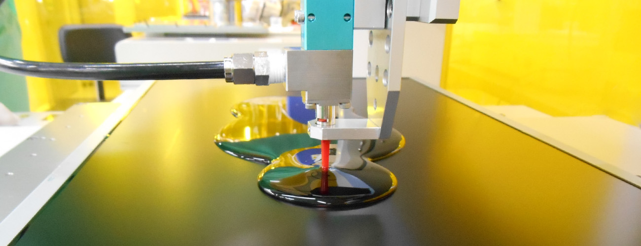 液晶モジュールのベゼル段差を吸収し、光学特性にも優れる、UV硬化型OCRを使ったボンディングをしております。